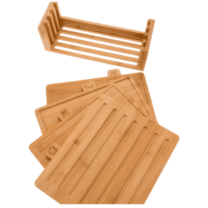 Sustainable Wood Bamboo Chopping Board Four-piece Set Household Kitchen Set with Rack Fruit Cutting Board